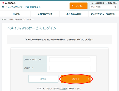 ログインページにアクセスし、必要事項を入力後、「ログイン」ボタンをクリックします。
