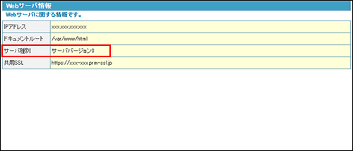 「サーバ種別」に、ご利用のサーババージョンが表示されています。