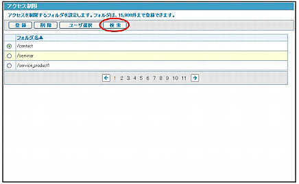 ※アクセス制限画面の表示方法→「アクセス制限を設定するフォルダを登録する」