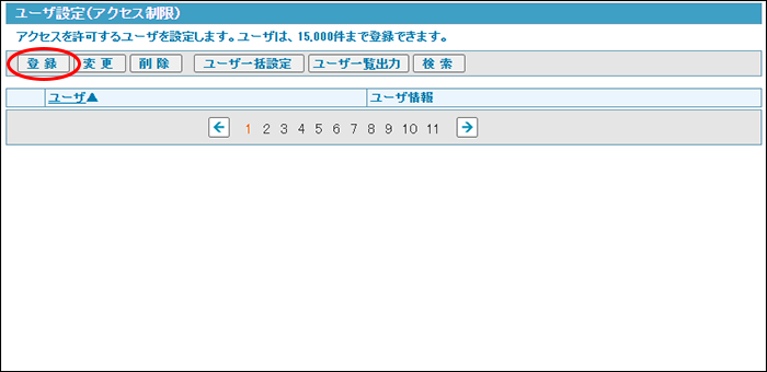 step1 アクセス制限画面を表示し、「ユーザ設定」をクリックします。