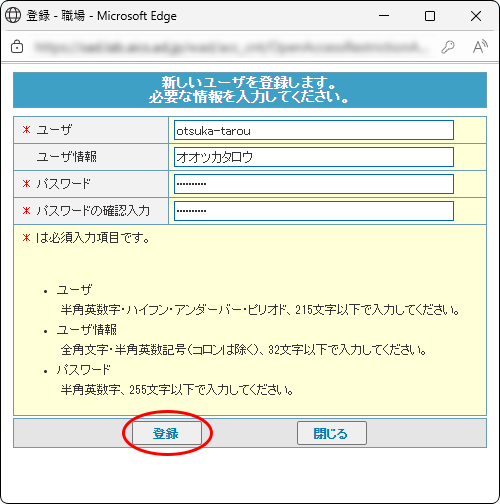step3 必要事項を入力し、「登録」ボタンをクリックします。