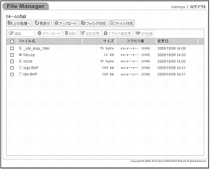 ※ファイルリスト画面の表示方法→「ファイルマネージャにログインする(管理者・Web管理者の場合)」
