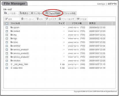 step1 ファイルリスト画面を表示し、「フォルダ作成」ボタンをクリックします。