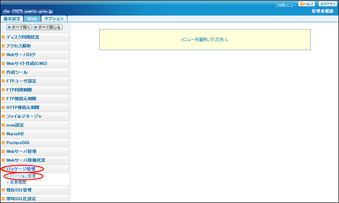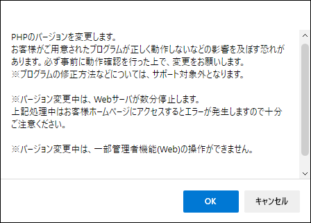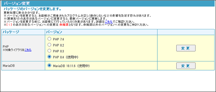 PHPのバージョンを変更します。操作はどれも同じ手順で実行できます。以降、例としてPHP のバージョンを変更する手順を説明します。