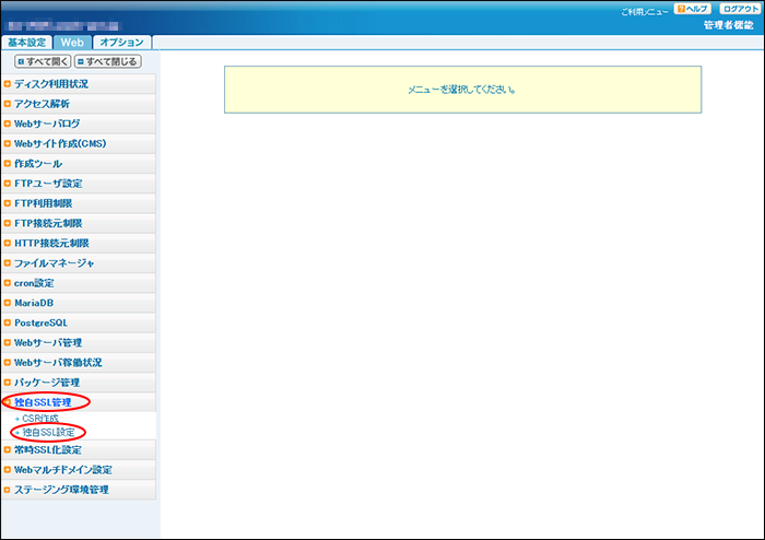 ・独自SSLを設定するには、サーバ証明書の取得が完了している必要があります。