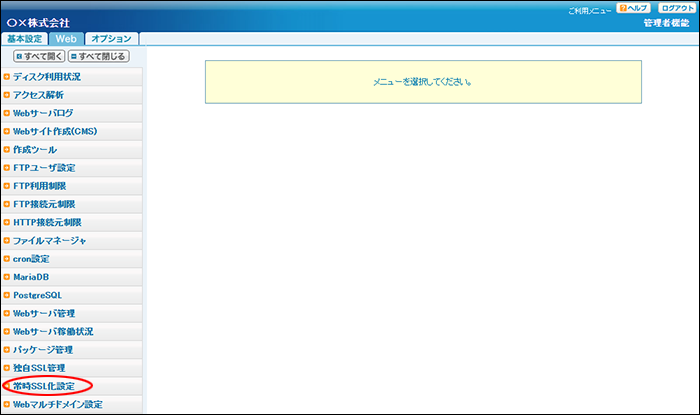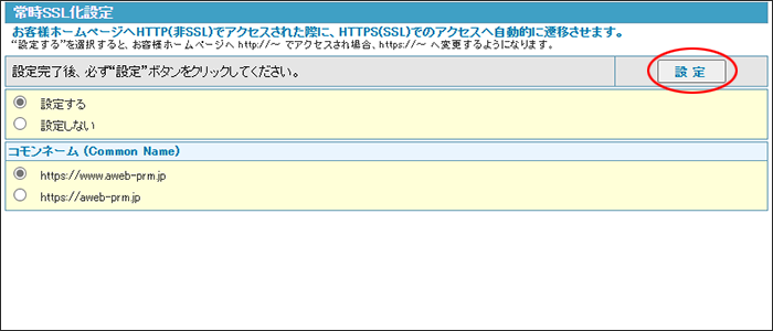 step1 Web画面を表示し、「常時SSL化設定」をクリックします。