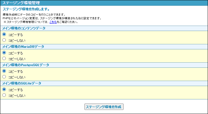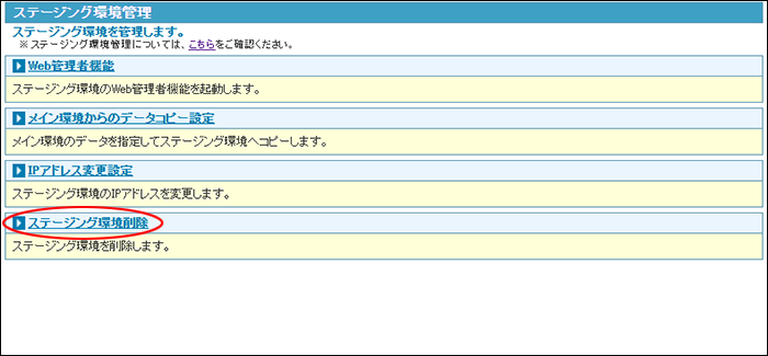 ※ステージング環境管理画面の表示方法→「ステージング環境管理画面を表示する」