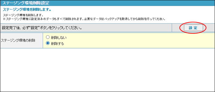ステージング環境削除設定画面が表示されます。