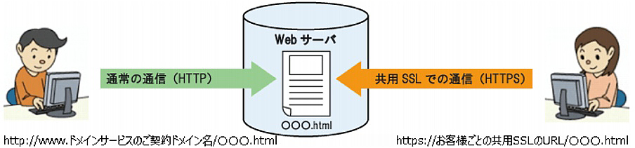 通常の通信(HTTP)も共用SSLでの通信(HTTPS)も、同じWebディスク領域にあるデータにアクセスします。
