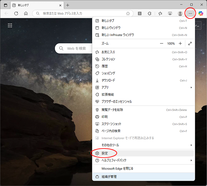 - ※Microsoft Edgeでの操作方法をご案内します。その他のブラウザをご利用の場合、各項目に準拠して設定を行ってください。