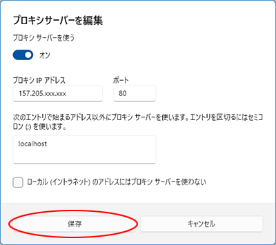 プロキシの設定を行います。