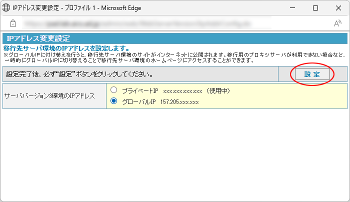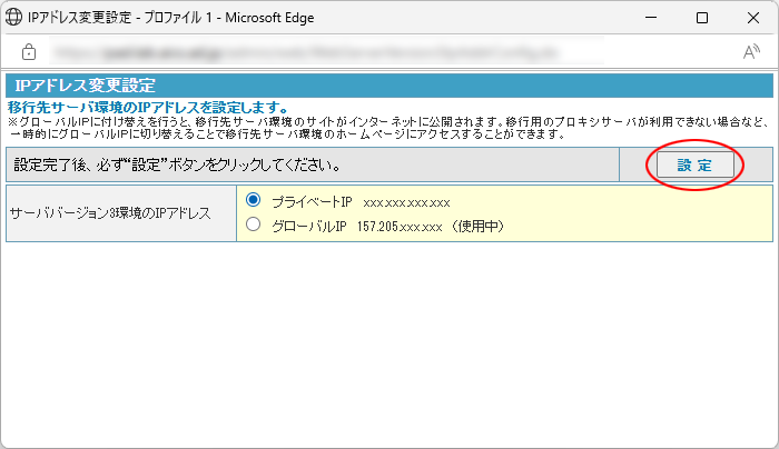 詳細は、「サーババージョン3の環境を一時的にグローバルIPに切り替える」をご覧ください。