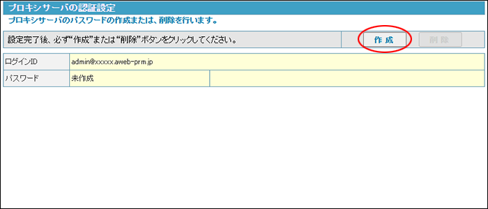 プロキシサーバの認証設定画面が表示されます。