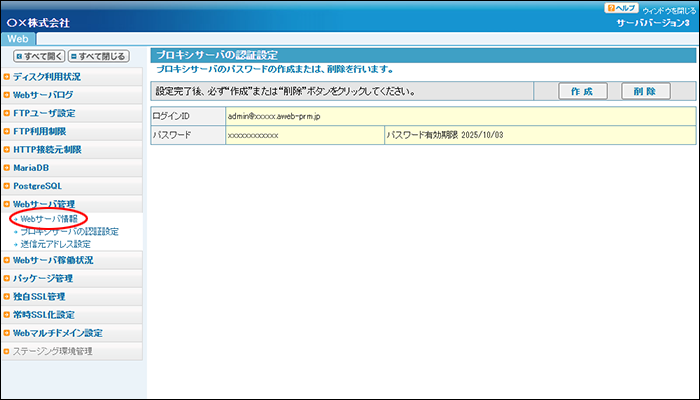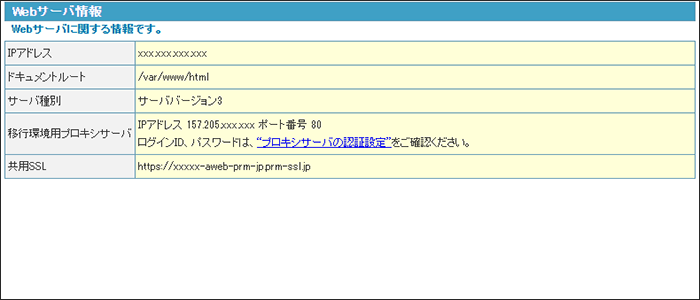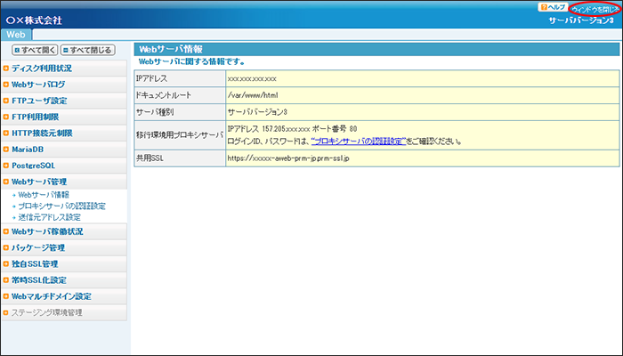 Webサーバ情報画面が表示されます。