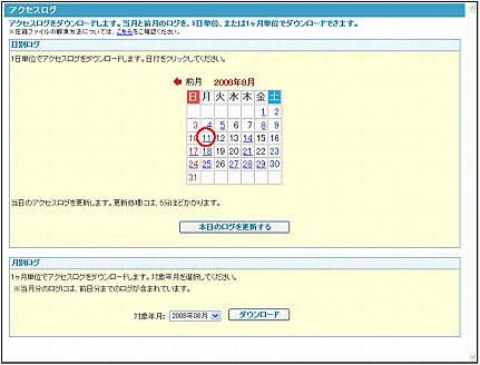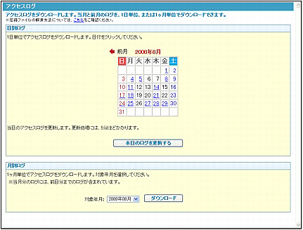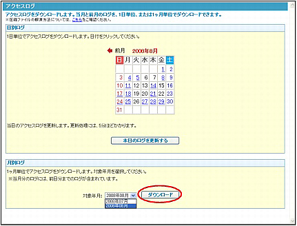 当月と前月の日ごとのアクセスログをダウンロードできます。