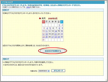 step1 アクセスログ画面を表示し、「本日のログを更新する」ボタンをクリックします。