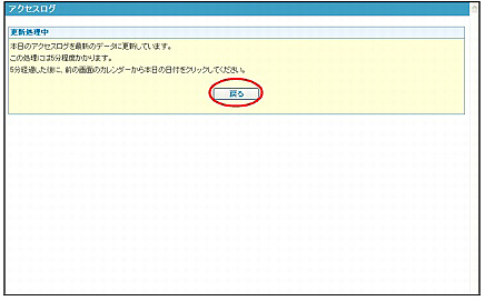 当日のアクセスログの更新には、「本日のログを更新する」ボタンをクリックしてから5分程度かかります。