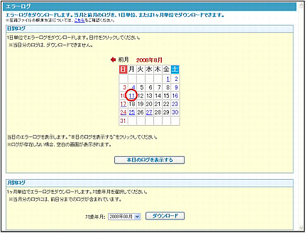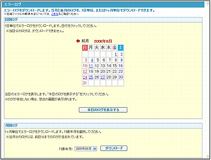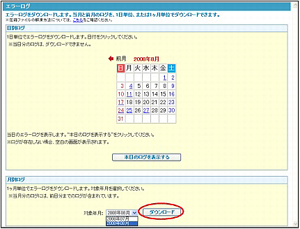 当月と前月の日ごとのエラーログをダウンロードできます。