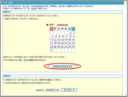 step1 エラーログ画面を表示し、「本日のログを表示する」ボタンをクリックします。