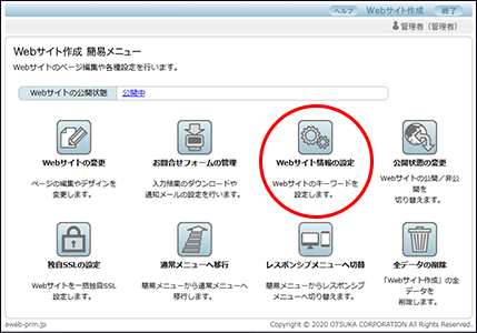 ※Webサイト作成 簡易メニュー画面の表示方法→「Webサイト作成 簡易メニュー画面を表示する」