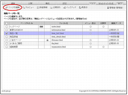 ※編集ページの一覧画面の表示方法→「編集ページの一覧画面を表示する」