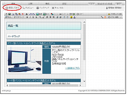 ・編集作業を終えるときは、必ず「保存して終了」をクリックして編集内容を保存してください。保存せずにブラウザを閉じたりすると編集中の内容が削除されます。