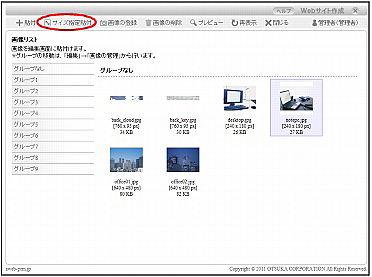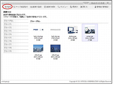 ・「画像の登録」をクリックすると、画像の登録画面で画像を1ファイルずつ登録できます。登録時は、「グループなし」に登録されます。