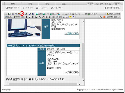 ページ編集画面で削除する画像を選択し、