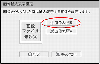 既に拡大画像が設定されている画像を選択し、画像拡大表示設定画面を表示すると、現在設定中の拡大画像が確認できます。
