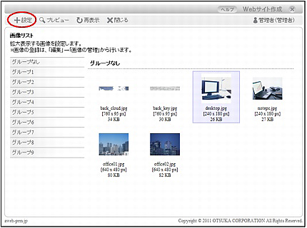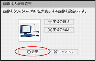 ページに貼り付けられた画像をクリックした際に表示する、拡大画像を設定します。
