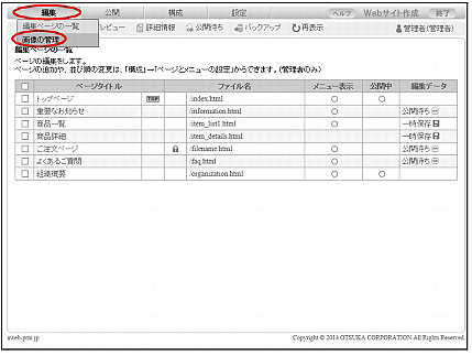 ※Webサイト作成画面の表示方法→「Webサイト作成を表示する(管理者の場合)」