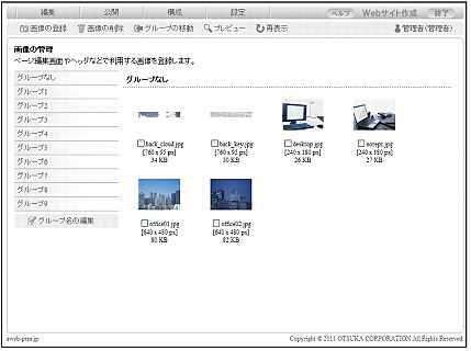 本機能で作成したWebサイトで使用する画像をアップロードする際、FTPソフトやファイルマネージャは使用できません。必ずWebサイト作成機能の「画像の登録」を利用してアップロードしてください。