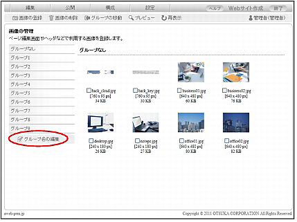 step1 画像の管理画面を表示し、「グループ名の編集」をクリックします。