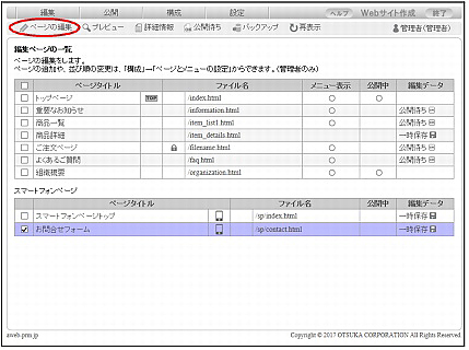 ※編集ページの一覧画面の表示方法→「編集ページの一覧画面を表示する」