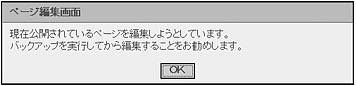 公開中のページを選択して「ページの編集」をクリックすると以下画面が表示されます。内容を確認し、「OK」ボタンをクリックします。