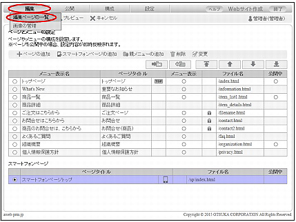 step3 スマートフォンページを編集する場合は、「編集」→「編集ページの一覧」の順にクリックします。