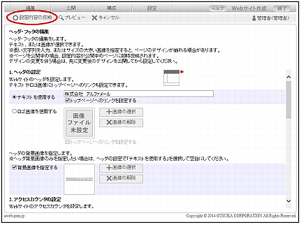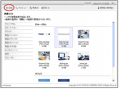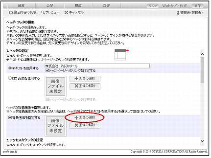 step3 ヘッダに使用する背景画像を選択し、「設定」をクリックします。