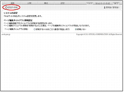設定画面で「抑制する」を選択した場合でも、およそ8時間経つと、自動でログアウトします。その場合、編集中のページは保存されずに破棄されます。定期的にバックアップを取ることをお勧めします。