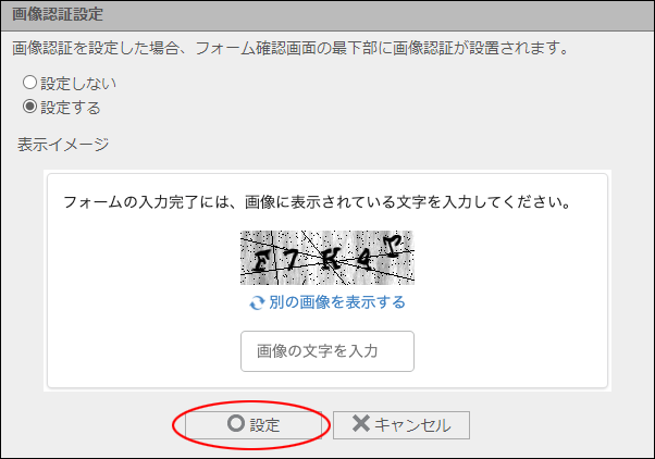 画像認証を設定すると、フォーム確認画面の最下部に下記のような画像が表示されます。