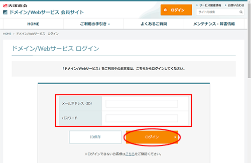 ブラウザを起動し、ドメイン/Webサービス会員サイトにアクセスします。