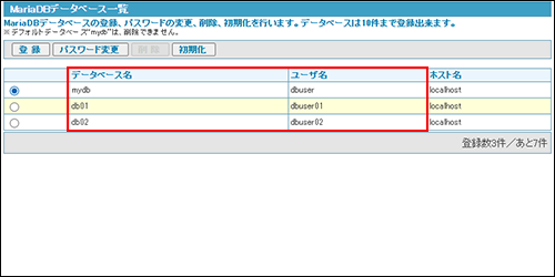 ※MariaDBを選択した場合の例です。