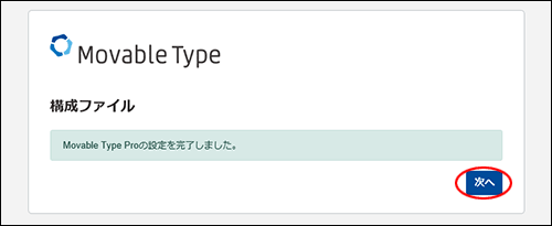 「Movable Type Proの設定を完了しました」と表示されます。