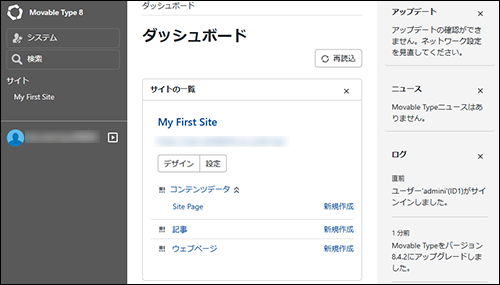 Movable Typeの画面が表示されます。