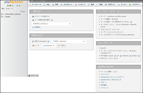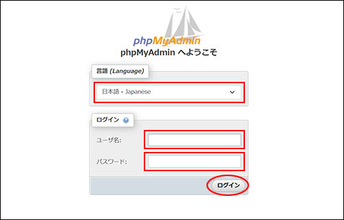 ブラウザを起動し、http://www.ドメイン名/phpmyadmin/ にアクセスします。