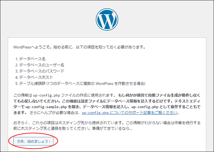 「さあ、始めましょう!」をクリックします。