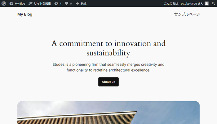 作成したサイトとサンプルページが表示されます。